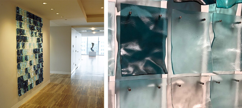 Inspired by both the natural world and the transitory nature of the urban experience, Cahill’s dreamlike images allow viewers to draw associations with their own remembered landscapes, resulting in a meditative and emotional response. Having spent many years living and travelling the world, much of this time spent in Denmark, her mother’s homeland, Cahill’s kiln formed glass connects structures of urban architecture, the associations and memories they invoke, and her innate respect for the natural landscape. Rather than a direct reproduction they are more her own interpretation of light and landscape and become a place for quiet contemplation.